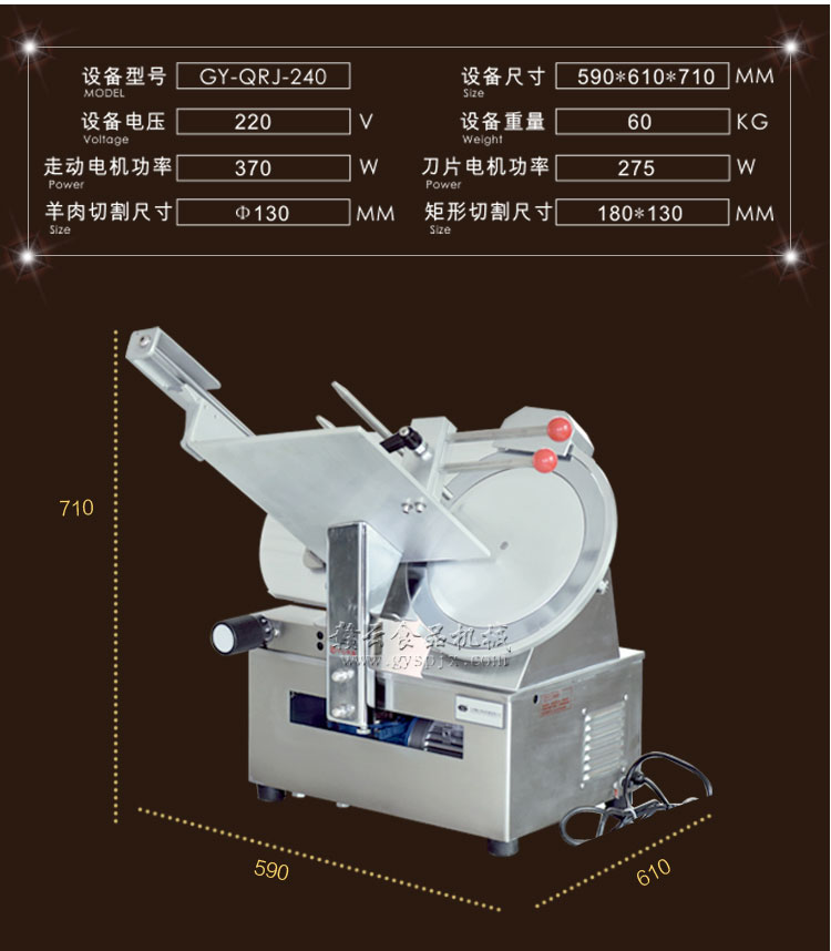 贛云牌全自動羊肉切片機采用加硬不銹鋼刀片,有效的保證了切割效率,切片厚薄可調0-15mm,可切零度以下凍肉,是凍羊肉、牛肉、豬肉切片,切卷利器;該機采用雙電機分別控制切肉刀轉動和推料走動,切肉刀轉動控制開關關閉狀態會自動切斷推料走動電機電源,已確保操作人員的人身安全。整機設計科學合理、美觀大方、省時省力、安全高效,是火鍋店、酒店、西餐等加工羊肉卷信賴的設備。