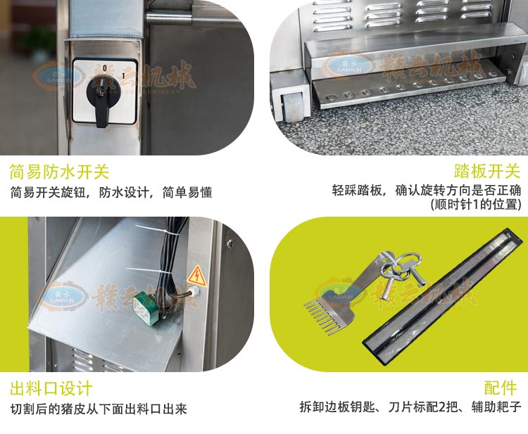 豬肉扒皮機(jī),扒皮用什么好,扒皮機(jī)那個(gè)牌子的好豬肉去皮機(jī)扒皮機(jī)采用不銹鋼制造,去皮機(jī)符合食品衛(wèi)生標(biāo)準(zhǔn)。去皮機(jī)可調(diào)式刀座,豬肉去皮機(jī)方便調(diào)整去皮厚度。去皮機(jī)采用優(yōu)質(zhì)刀片,去皮皮厚可調(diào)節(jié),去皮機(jī)附移動(dòng)輪,移動(dòng)方便。扒皮機(jī)腳踏板式操作安全開關(guān),操作安全。