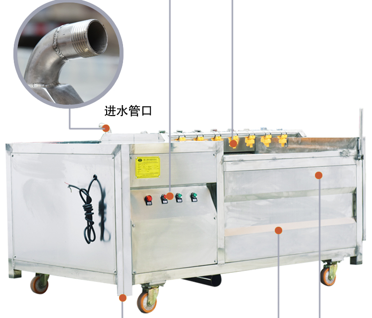毛輥式連續自動清洗機采用食品級不銹鋼制造而成、堅固耐用,毛輥全部采用優質樹脂、韌性高、耐磨性好,從而達到洗潔凈高、節省勞力、節水。