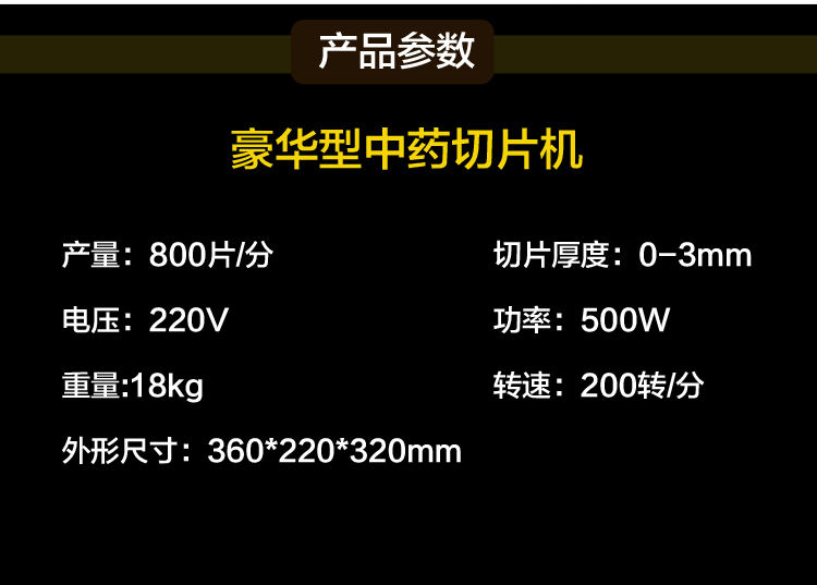 本機(jī)選用單相電機(jī)配套,采用高檔軸承,并安裝四把刀片在刀盤上,速比慢而切片功效高,切片厚薄可以調(diào)節(jié),廣泛適用于中藥房、藥店、中藥加工場(chǎng)等。本機(jī)具有體積少、效率高、操作簡便、精巧美觀,即省電又安全等特點(diǎn)。