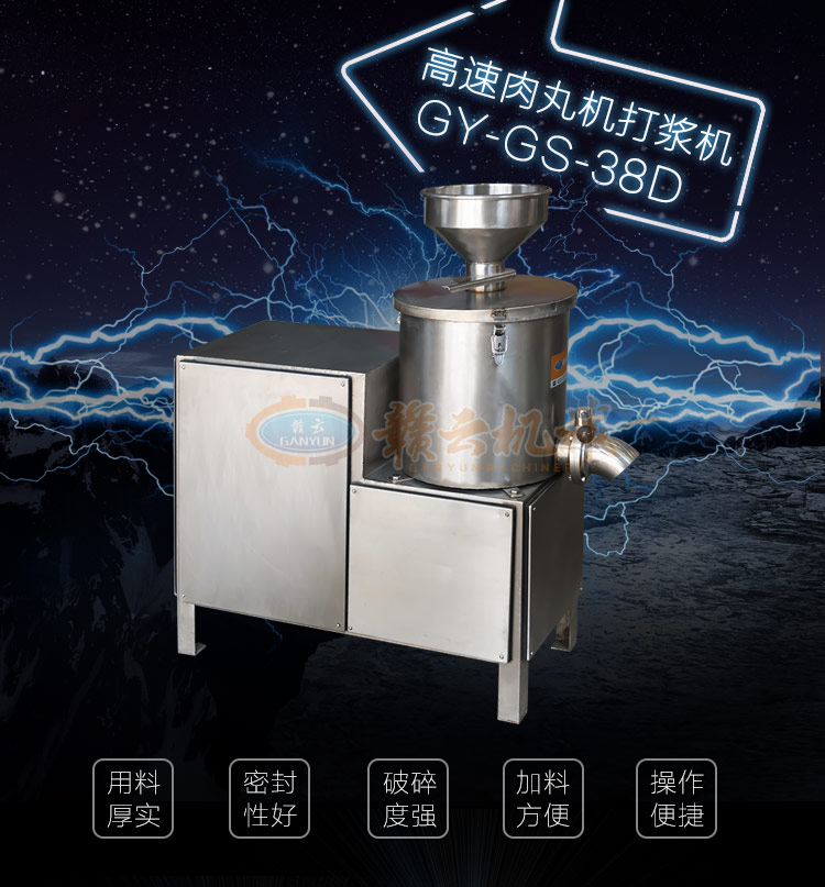 贛云牌方便取料式高速打漿機選用全不銹鋼材質設計制作,開機2-3分鐘即可完成打肉、配料,攪拌成漿。針對魚肉豬肉的纖維組織,高速生產過程中改善了肉質脂肪纖維,生產出的丸子外表光滑細嫩、低脂、口感爽脆,彈性好,韌性好,是潮州魚、肉丸的專用打漿設備。此款肉丸高速打漿機還可以連續投料打漿,效率高,打漿效果好,根據肉丸生產產量需求可定做,因此深受肉丸加工廠家青睞設備!