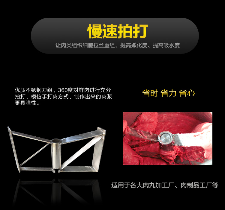 款全封閉慢速肉丸打漿機,型號GY-MQ-32B型,采用全不銹鋼材質,在原有的32型慢速肉丸機的基礎上將安裝有電機部位全面封閉,并設計有電源開關控制,尾部設計有排水閥,方便冷卻外桶的排水,以全新的面貌上市。贛州市贛云食品機械廠,致力于打造魚肉丸加工設備影響力企業之一!
