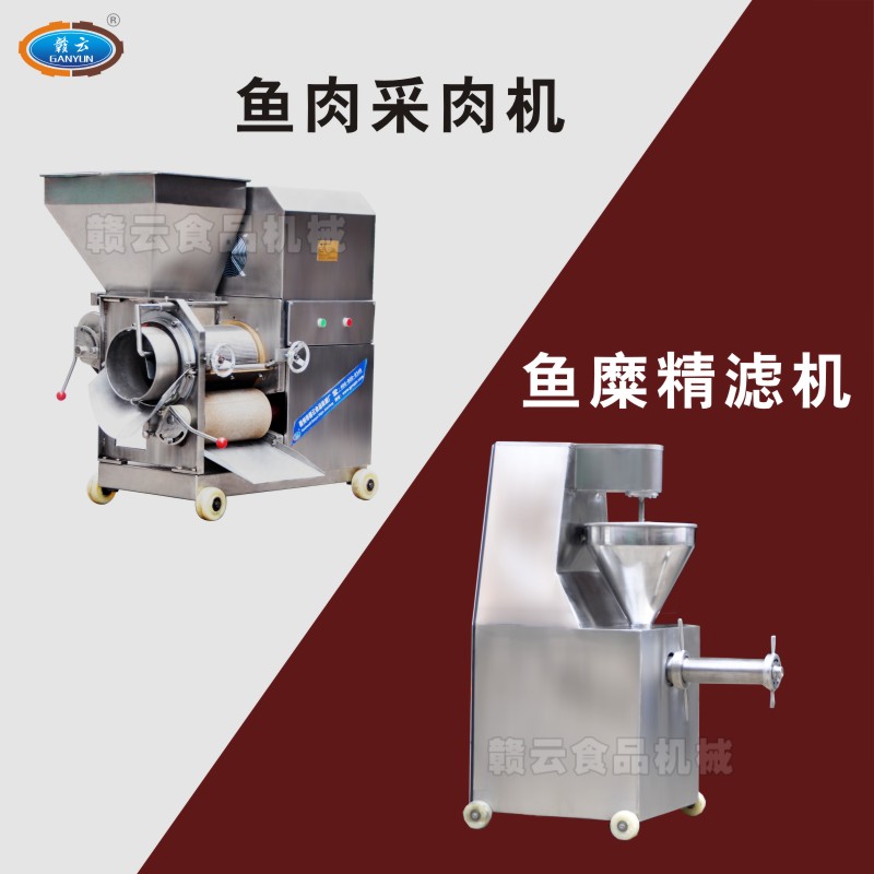 本套設備由:300型全不銹鋼魚肉采肉機、200型自動魚糜精濾機、36型全封閉慢速肉丸打漿機、300型盤式菜餡機、第二代肉丸包心機和自動煮丸水槽六臺設備組合而成。本套設備除了可以生產包心魚丸,還可生產實心魚丸,增加一臺強力絞肉機和高速打漿機亦可生產包心豬肉丸和撒尿牛丸。