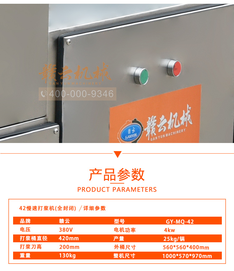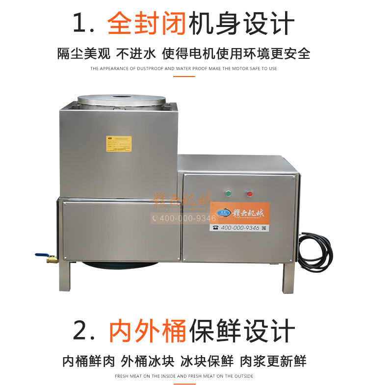中大型魚丸打漿機采用全不銹鋼材質,有效的保護了電動機,操作上更安全,制作魚丸更衛生,42型慢速肉丸打漿機可一次加工50斤左右魚漿,是中型魚丸,牛肉丸加工首先選慢速拍打設備之一,贛云歷經十年品質,為您加工魚丸,牛肉丸等設備保駕護航。