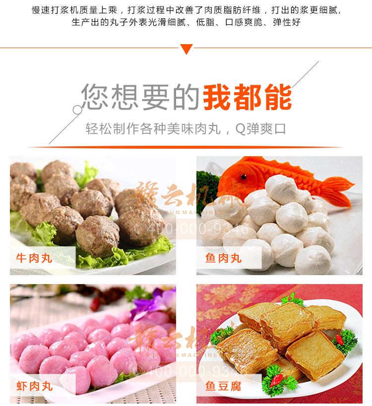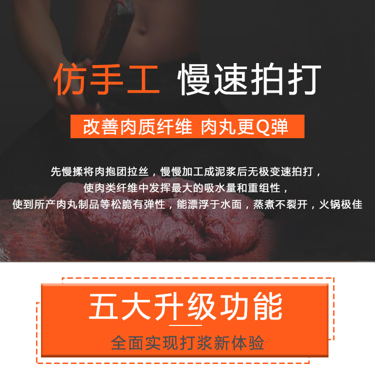 中大型魚丸打漿機采用全不銹鋼材質,有效的保護了電動機,操作上更安全,制作魚丸更衛生,42型慢速肉丸打漿機可一次加工50斤左右魚漿,是中型魚丸,牛肉丸加工優選慢速拍打設備之一,贛云歷經十年品質,為您加工魚丸,牛肉丸等設備保駕護航。