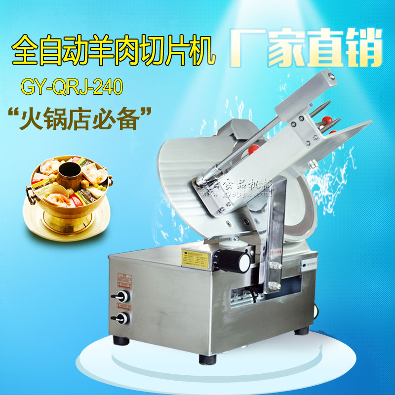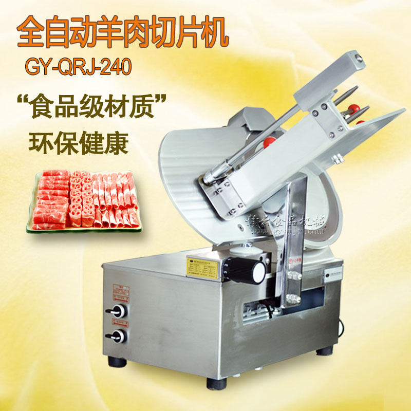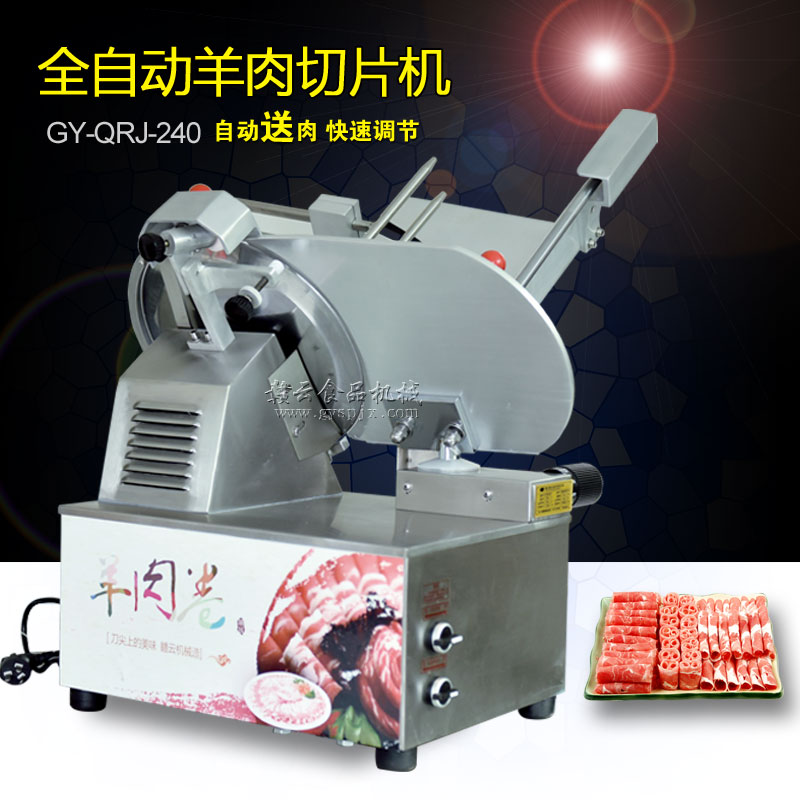 贛云牌全自動羊肉切片機采用加硬不銹鋼刀片,有效的保證了切割效率,切片厚薄可調0-15mm,可切零度以下凍肉,是凍羊肉、牛肉、豬肉切片,切卷利器;該機采用雙電機分別控制切肉刀轉動和推料走動,切肉刀轉動控制開關關閉狀態會自動切斷推料走動電機電源,已確保操作人員的人身安全。整機設計科學合理、美觀大方、省時省力、安全高效,是火鍋店、酒店、西餐等加工羊肉卷信賴的設備。