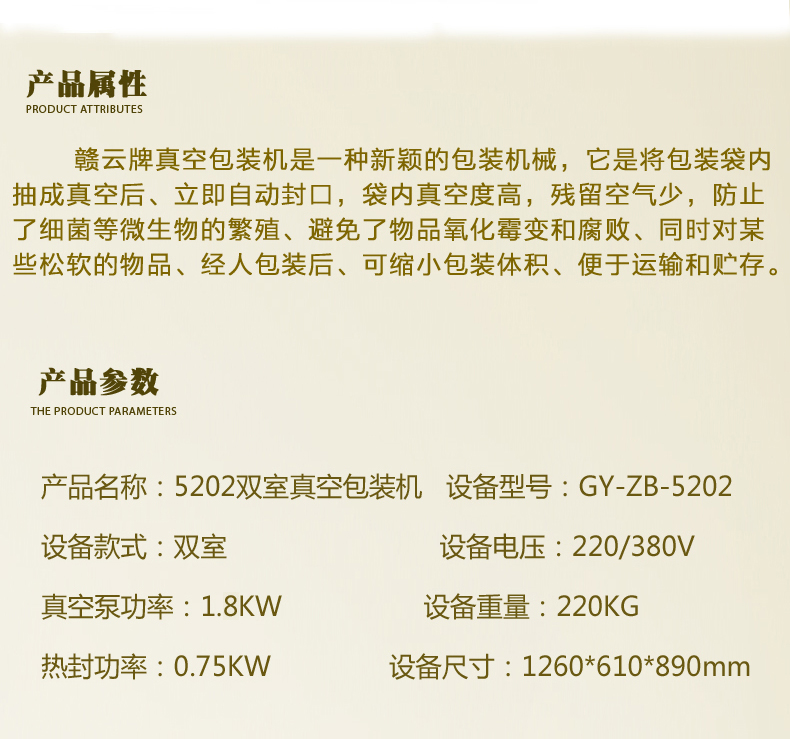 主頁-> 食品包裝設備->大型包裝設備->5202雙室真空包裝機