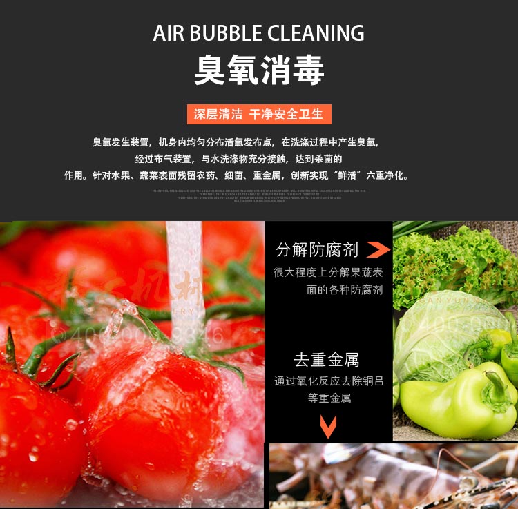 蔬菜清洗機有效的殺滅有害細菌,分解殘留農藥;通過清洗水循環利用,可節約80%的清洗用水用于清洗蘑菇、芹菜、菠菜、白菜等莖葉類蔬菜以及蘋果、西紅柿、辣椒、茄子、黃瓜、草莓等果蔬的主要設備,廣泛適用于蔬菜加工行業及廠礦、部隊、醫院、各大專院校等單位的食堂。