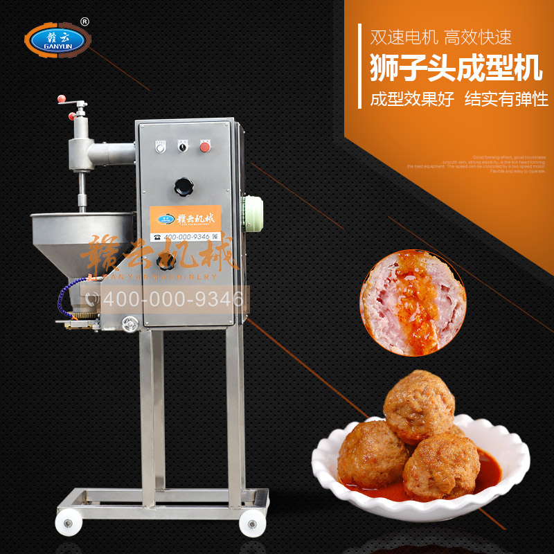 獅子頭成型機是我司研發的有一款適合大肉丸成型的設備,如寧都大肉丸,獅子頭,該機采用雙速電機分別控制進料速度和切割速度,調節更人性化處理,適合不同稀稠度肉漿的成型,是寧都大肉丸、獅子頭成型的好幫手。