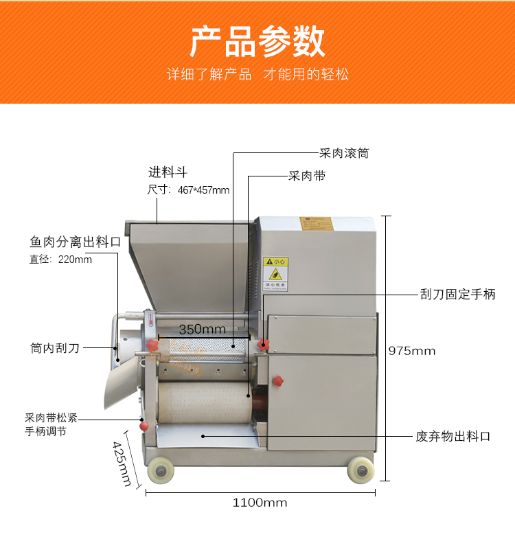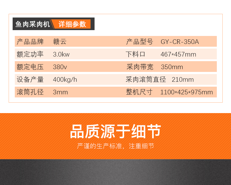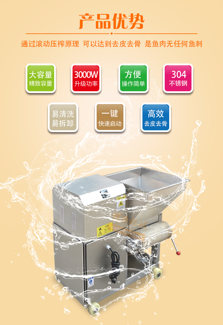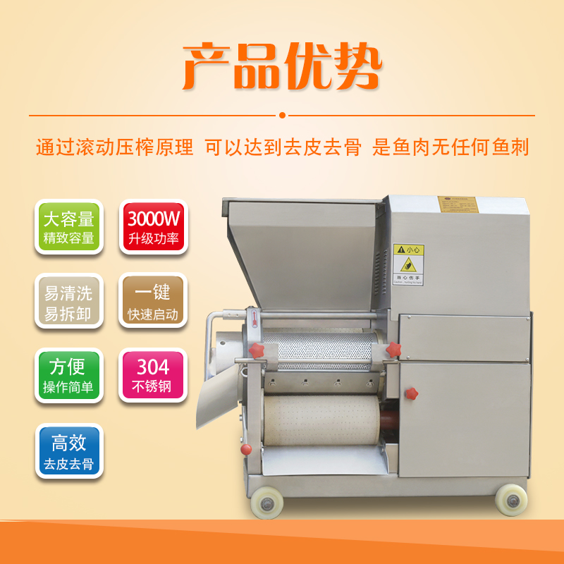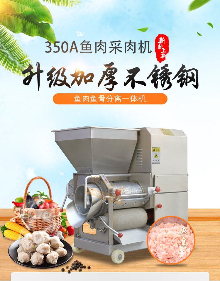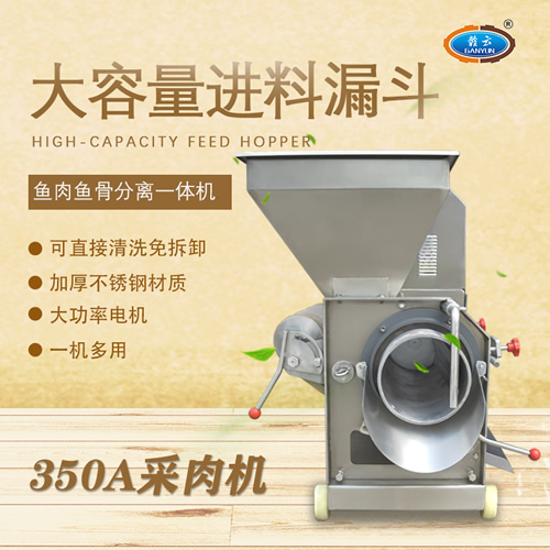 贛云牌350A型魚肉采肉機主要用于將魚刺、魚皮、魚筋和魚肉進行擠壓分離,達到提取魚肉為主要目的的前期處理設備。