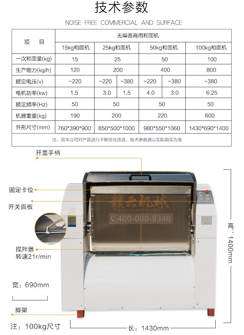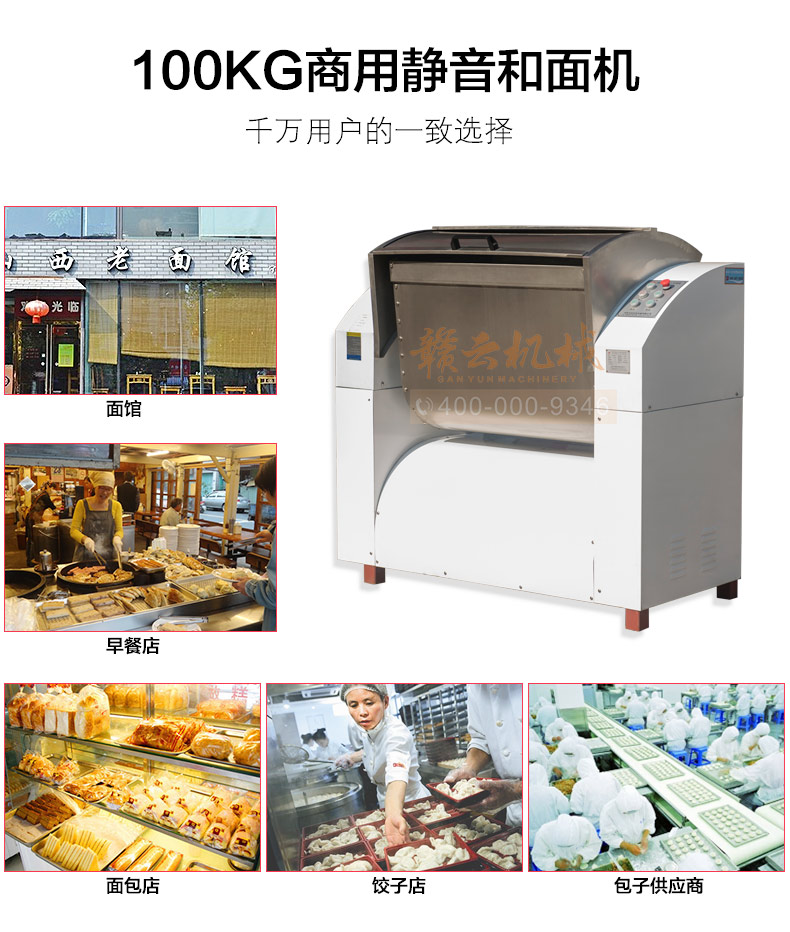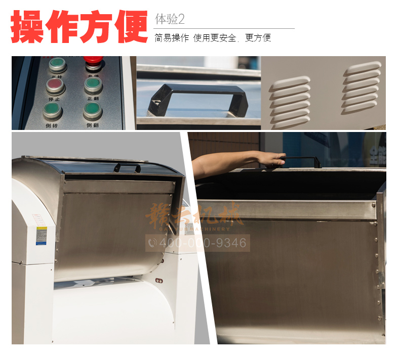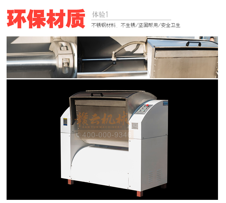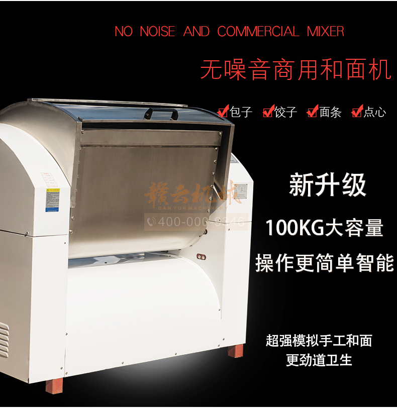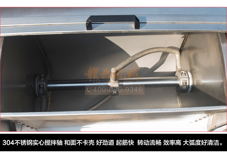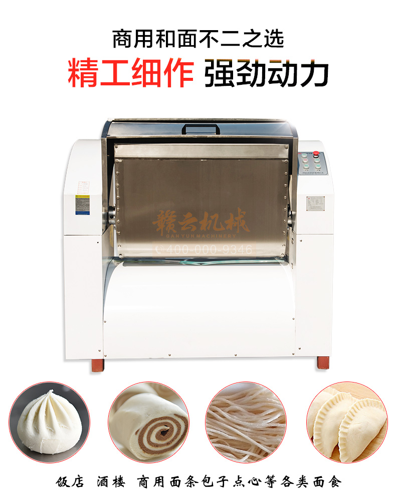 贛云100kg商用和面郎,和面攪拌設備,攪拌軸和攪拌桶均采用304不銹鋼材質設計,自動倒料裝置,科學設計,省時省力。