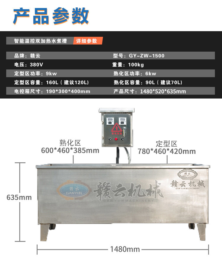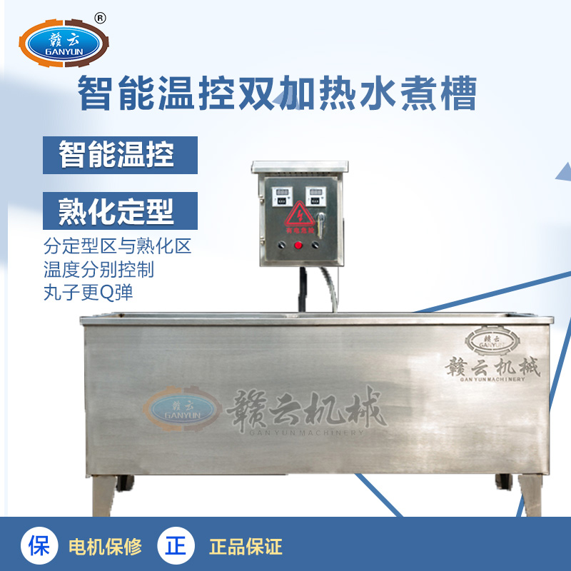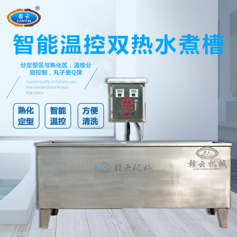 GY-ZW-1500型自動恒溫定型熟化水槽,也叫智能溫控雙加熱水槽,是我公司新設計開發(fā)的,一款適用于貢丸、包心肉丸、獅子頭、墨魚丸、實心肉丸、蔬菜丸子、米果丸子等定型熟化加熱用水槽。
