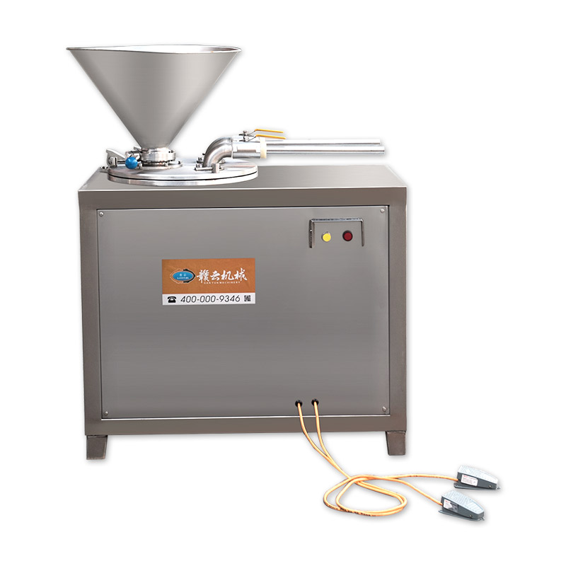 贛云液壓灌腸機,新款灌漿機,雙管灌腸機采用液壓灌漿推料原理設計,密封性能良好,配合雙管灌漿,可自動調節灌漿,自動吸料,腳踏開關控制操縱自如。是腸類灌腸設備。