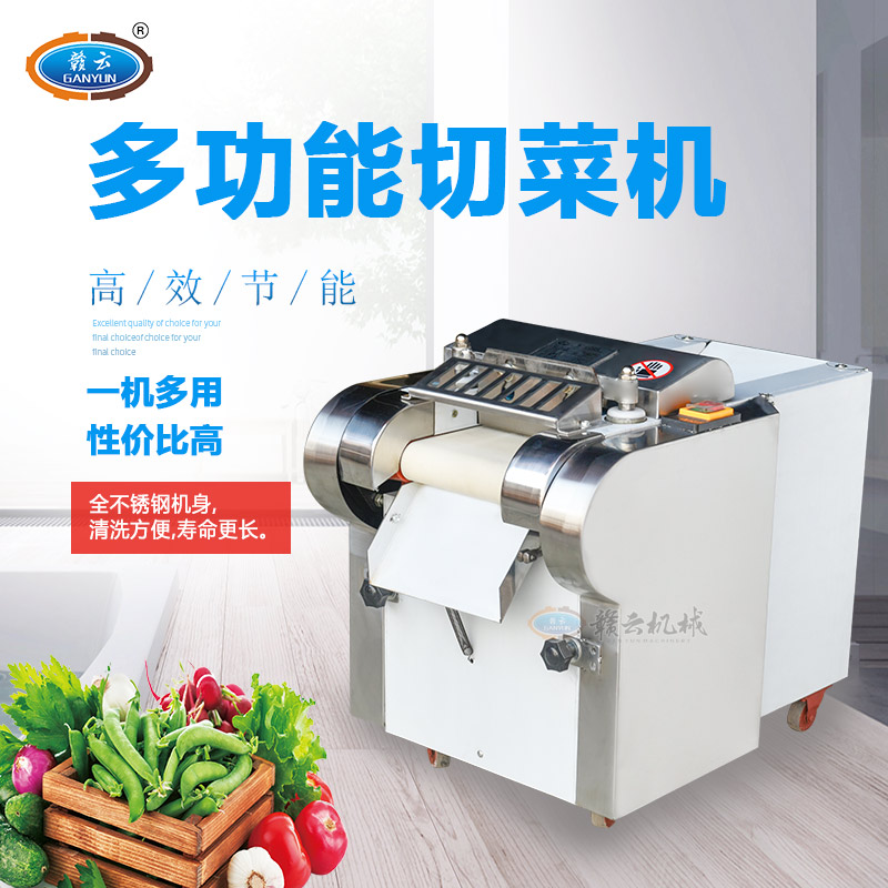 贛云牌多功能切菜機是根據(jù)多種樣機在實地使用中存在不足之處,反復改進設計制造,采用不銹鋼和全滾動軸承結構,具有外形美觀,成熟可靠,使用維修方便等特點。適用直蔬菜脫水、速凍、保鮮、腌漬等食品行業(yè)各類蔬菜。刀片距離可調節(jié)在0.1cm-2cm之間即切片、丁、絲厚薄在0.1cm-2cm。