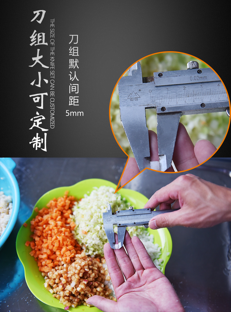 指適用于脫水蔬菜、速凍蔬菜加工廠、果凍仙草蜜等軟質食材及食品醬菜行業加工各種根、莖類蔬菜成正方