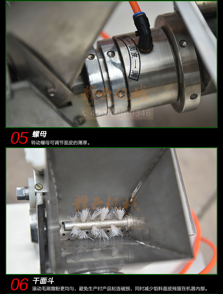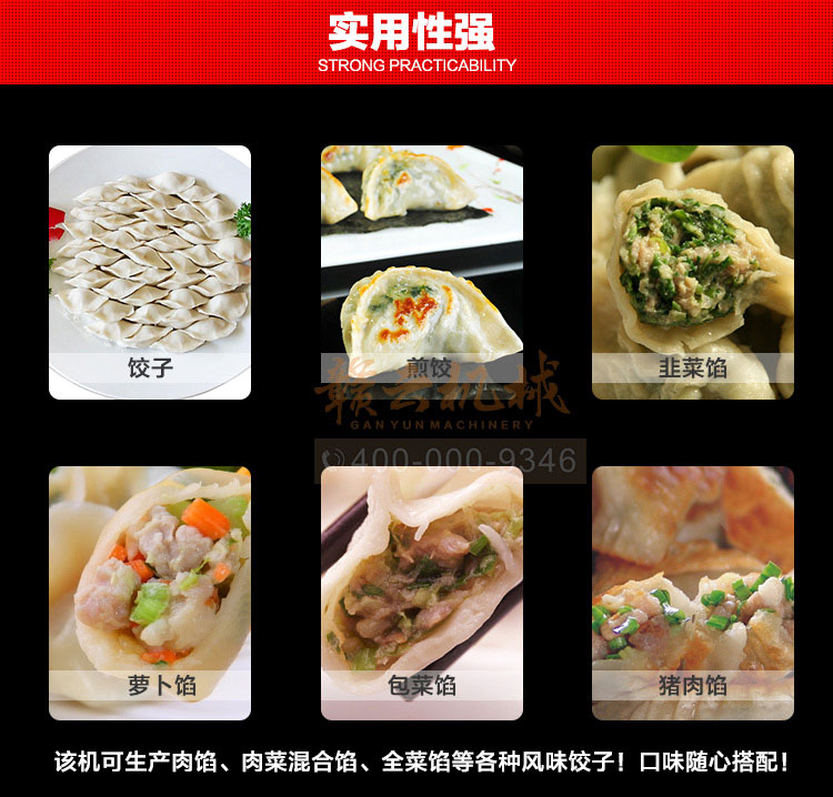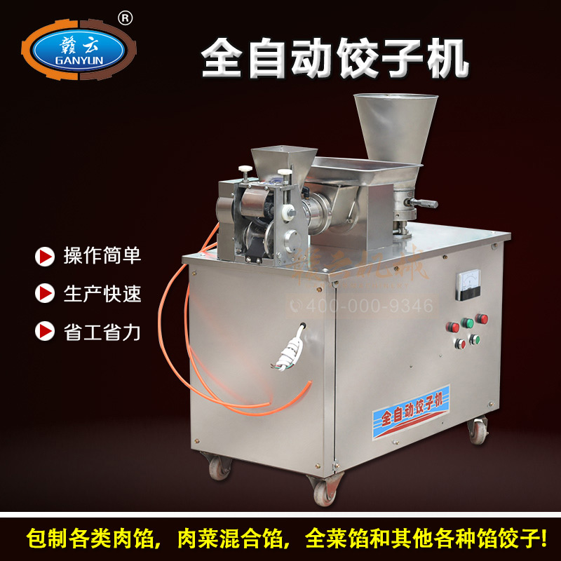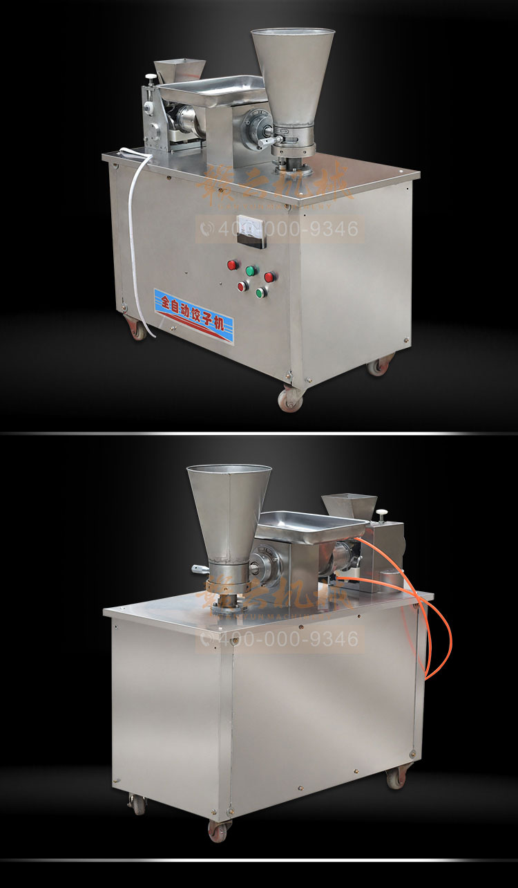 食品級材質全自動餃子機,操作簡單,容易入門,生產效率:7200個/h,讓您省工少力,該款電動餃子機可生產肉餡、肉菜混合餡、全菜餡餃子等各種風味i不同的餃子!口味隨心搭配