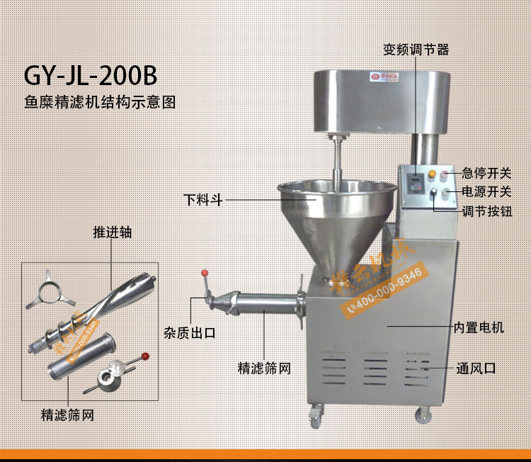 水產(chǎn)加工設備->魚肉加工設備->200變頻魚糜精濾機 | |||||||
