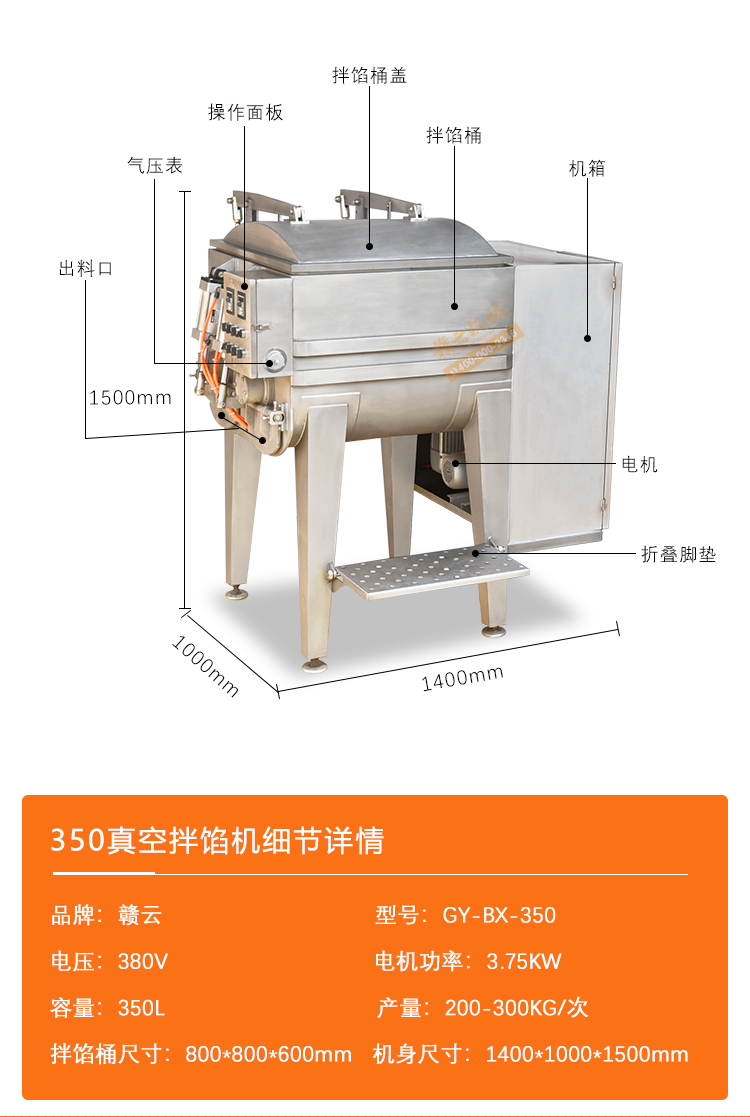 主頁-> 肉制品前處理->斬拌滾揉設備->350真空拌餡機