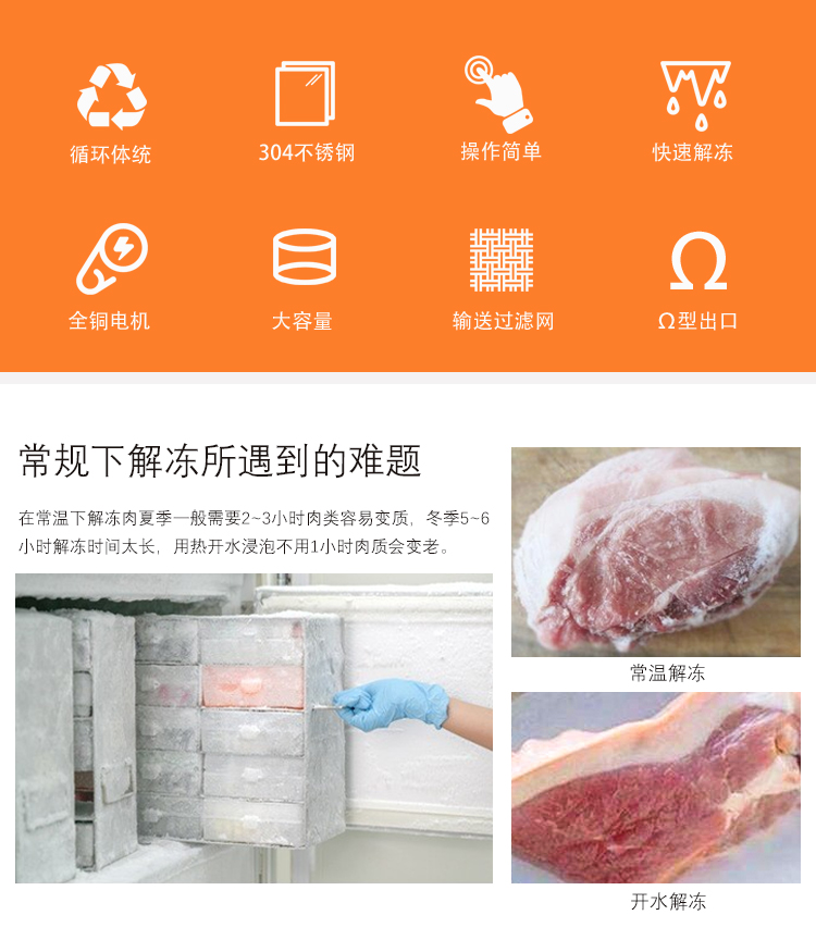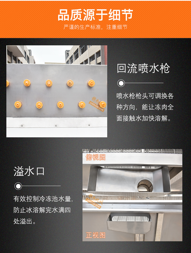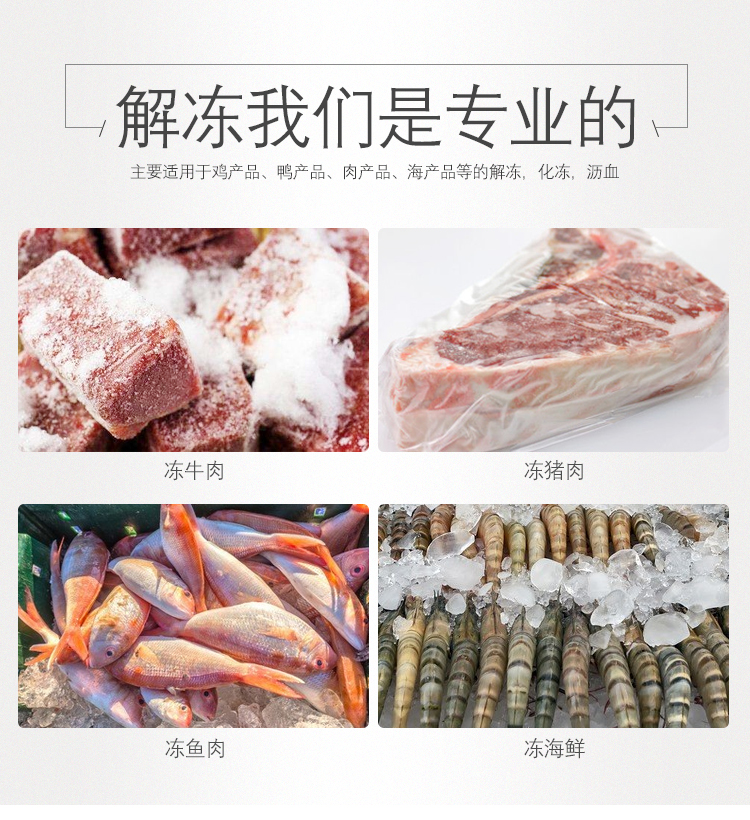 氣泡解凍池是凍制品解凍機,可以解凍各種凍肉,使其實現快速解凍效果,同時保留原來的鮮味,過程時間短所以更能保留原來的味道。