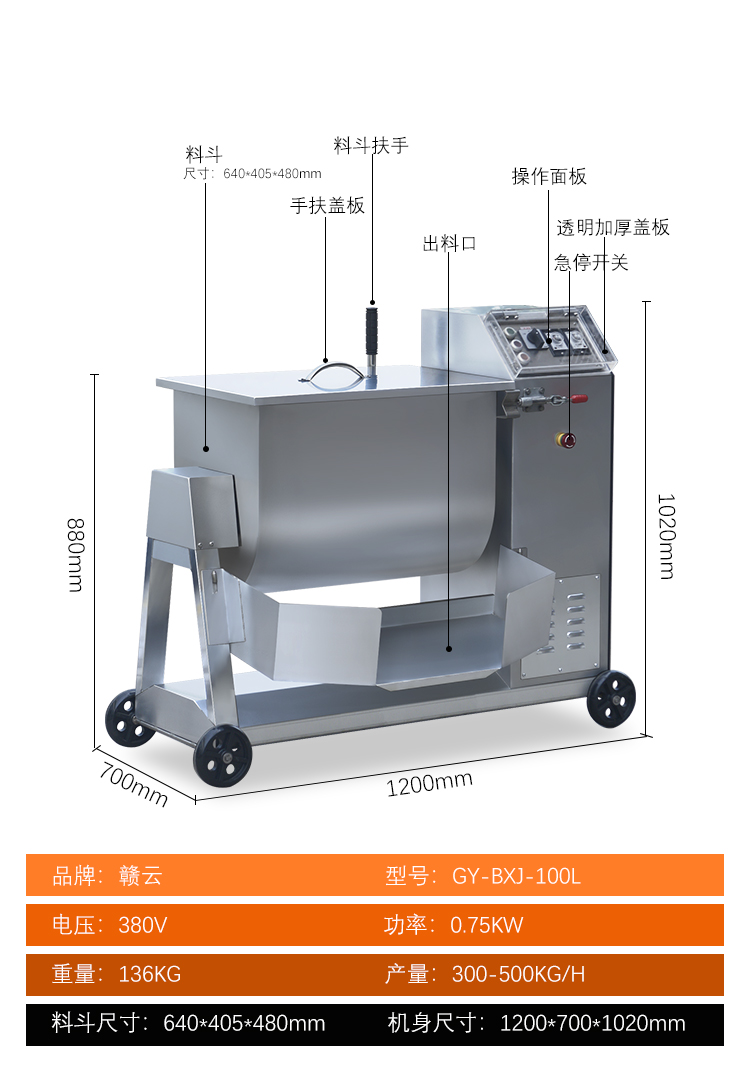 肉制品前處理->斬拌滾揉設(shè)備->100L不銹鋼拌料機 | |||||||