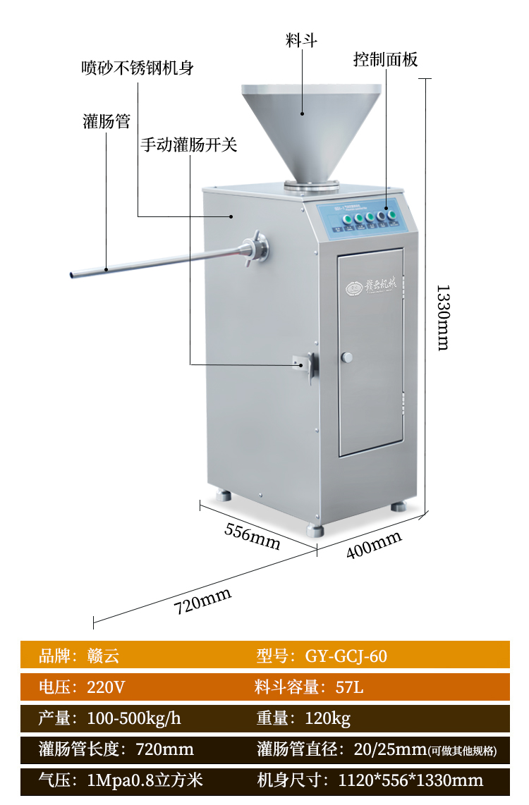 主頁-> 肉制品前處理->專用灌腸設備->氣動灌火腿腸打卡一體機