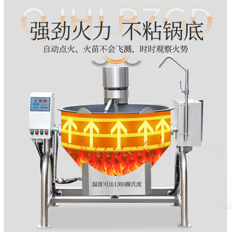 主頁-> 中央廚房設備->熱調理區設備->150升燃氣炒菜機(帶攪拌)
