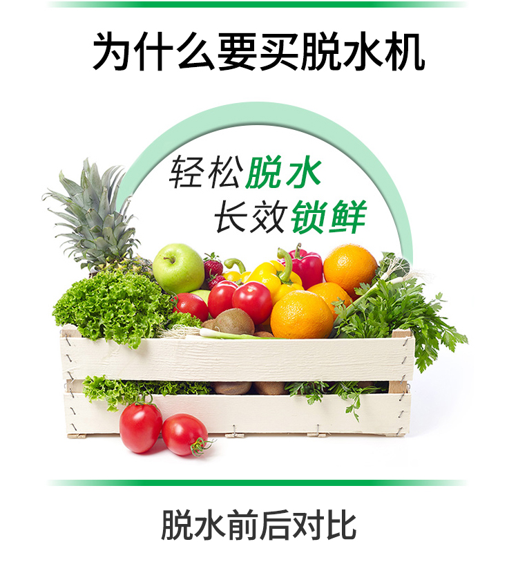 各種葉菜類、根莖類、肉類等輕松脫水,鎖住新鮮。