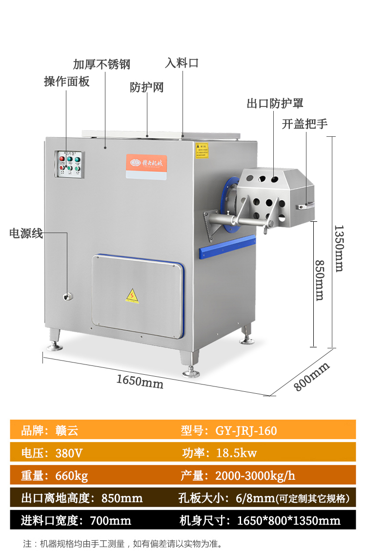 160型凍肉絞肉機使用高速螺旋擠壓技術