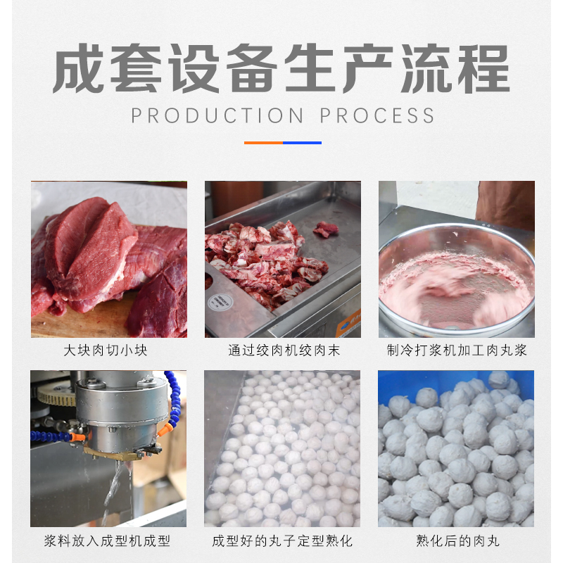 用于肉類的絞肉、打漿及肉丸的成型和熟化,可生產各類牛肉丸、素丸、魚丸、豬肉丸、火鍋丸子等各類實心丸子。