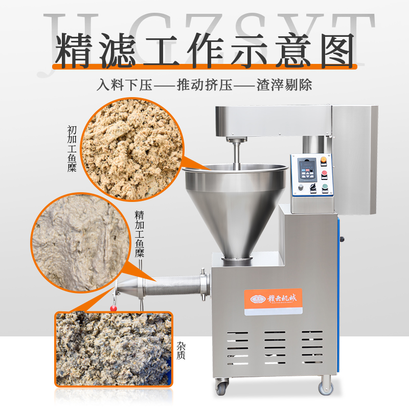 贛云200型魚糜精濾機是一款專用于過濾魚肉中雜質的設備,通過機器對采集好的魚肉進行精濾,去除殘留在魚肉中的魚刺、魚鱗,魚筋,魚皮等雜質,提升魚肉品質。魚肉精濾機采用食品級不銹鋼材質,帶有變頻功能,設備適用于生產魚丸、魚豆腐、鱈魚腸等食品加工廠。