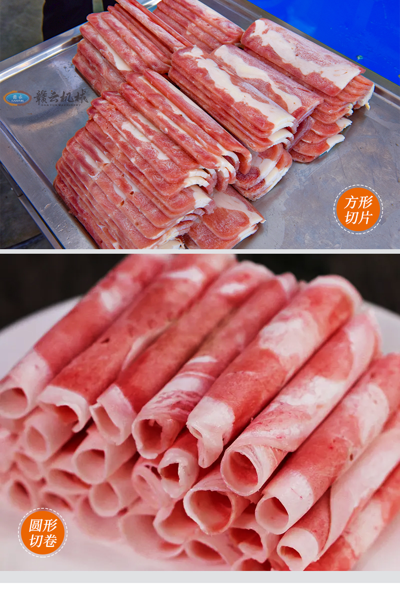 機器可以直接切零下18度凍肉、圓形肉、方形肉、五花肉、牛排等。