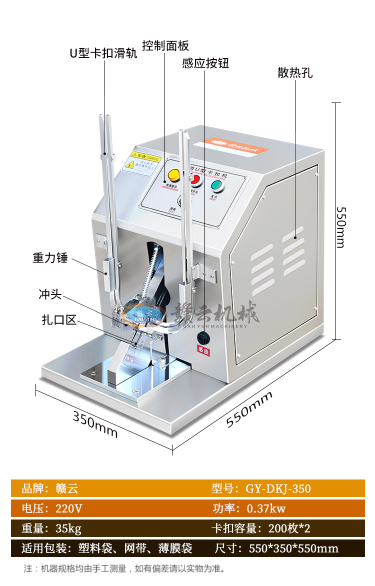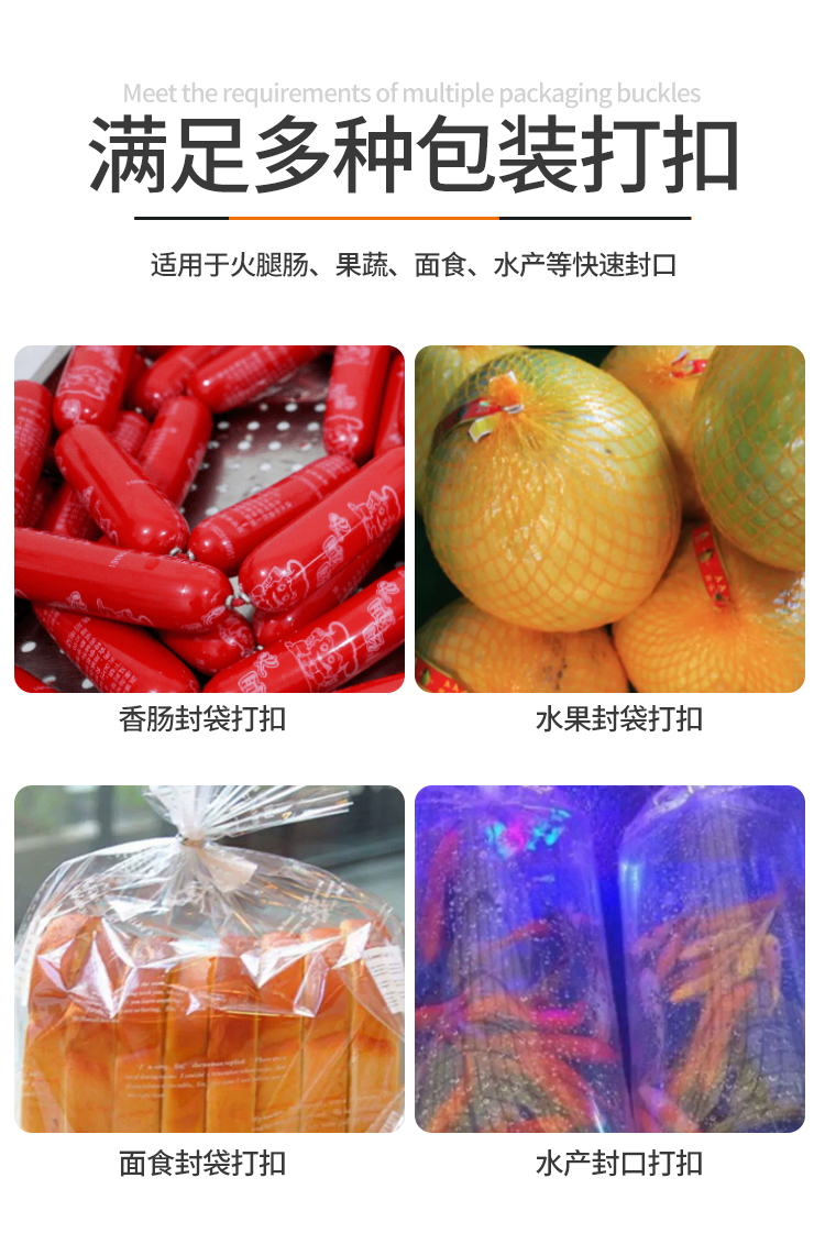 適用于火腿腸打扣、食品包裝等快速、準確打扣等。