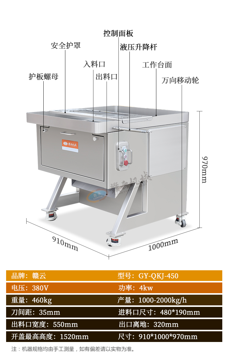 用于新鮮豬排骨、羊排、雞、鴨、魚、兔子、豬蹄的切條切塊加工。