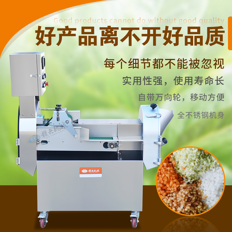 好產品離不開好品質,贛云切菜機采用全不銹鋼機身,堅固耐用,使用壽命長。機器細節之處也經過精心打磨,注重品質,值得廣大客戶的信賴,設備實用性強。切菜機工作效率高,一臺機器堪比10個人工,大大的節省了人工成本。