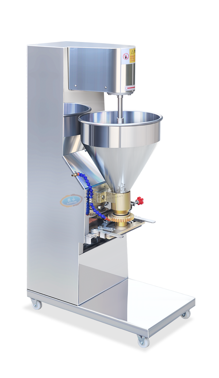 調速肉丸成型機是在實心肉丸成型機的基礎上,改開關控制為變頻數字調速控制,成型速度可變。是做實心豬肉丸、魚肉丸、牛肉丸成型好選擇。詳細技術參數可參考實心肉丸成型機GY-CXJ-120B型肉丸成型機。