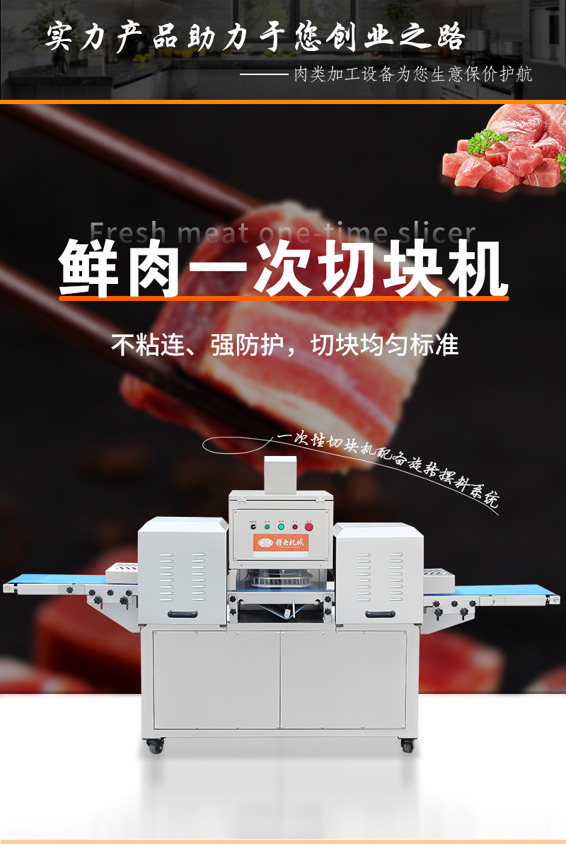 適用于:五花肉、牛肉、魚、雞、鴨等鮮肉和家禽的快速切塊,一次成塊。