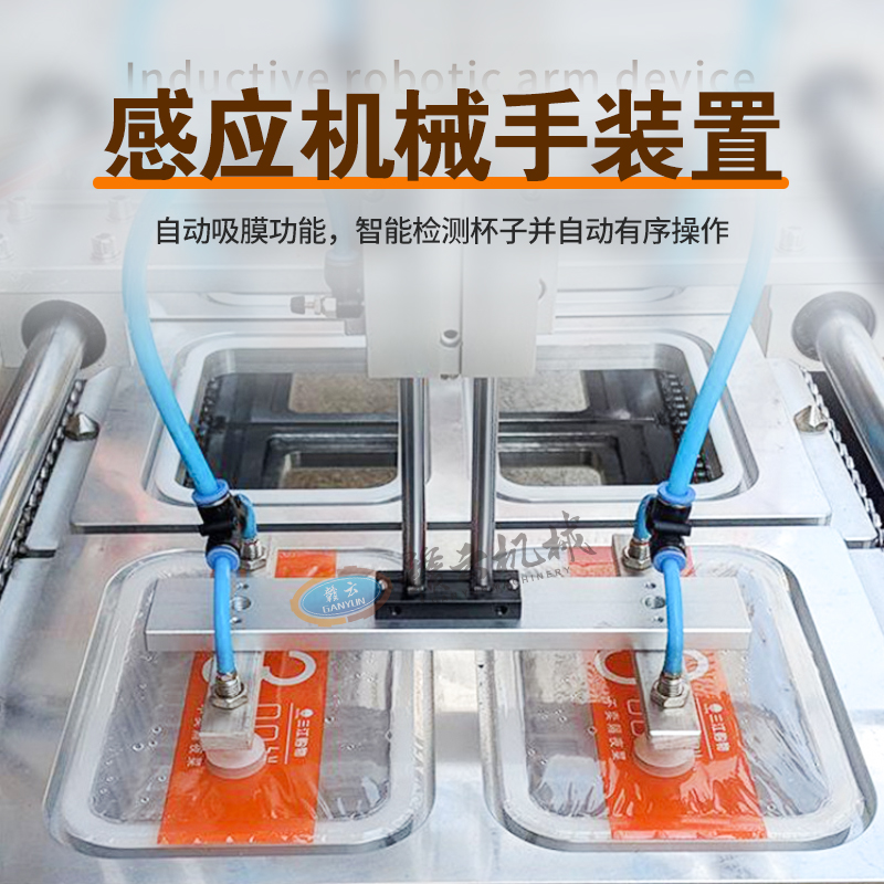 專為預制菜、快餐盒飯、鮮食、小吃等設計,實現全自動放盒、封口、切膜,支持異形包裝定制,提升鎖鮮效率與美觀度。