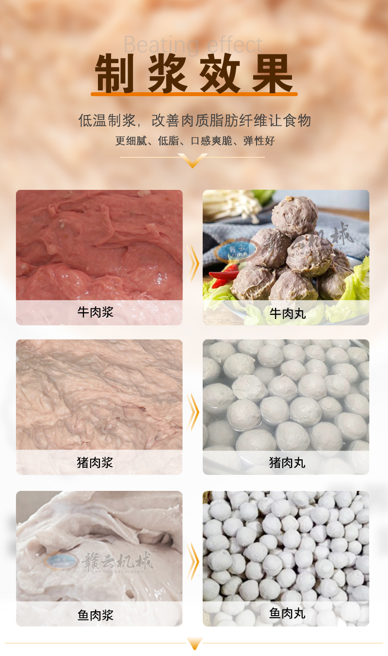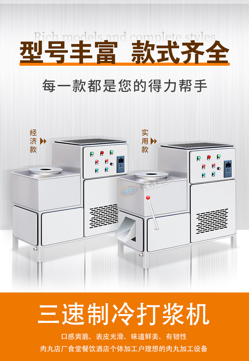 專為肉丸打漿加工設計,三速適配不同肉丸口感需求,用于牛肉丸、魚丸、貢丸、豬肉丸等食品高效生產。
