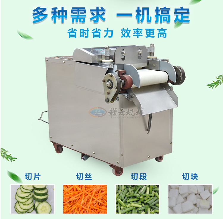 贛云牌多功能切菜機是根據多種樣機在實地使用中存在不足之處,反復改進設計制造,采用不銹鋼和全滾動軸承結構,具有外形美觀,成熟可靠,使用維修方便等特點。適用直蔬菜脫水、速凍、保鮮、腌漬等食品行業各類蔬菜。刀片距離可調節在0.1cm-2cm之間即切片、丁、絲厚薄在0.1cm-2cm。