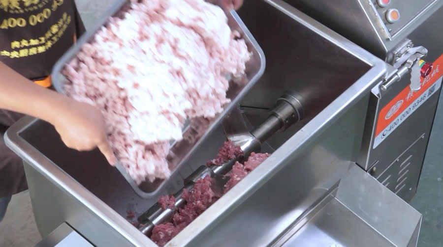 在將所有需要絞碎的原料通過絞肉機(jī)加工完成后,接下來這一步將使用贛云不銹鋼拌料機(jī),這個(gè)拌料環(huán)節(jié)就很重要,攪拌過程中的的添加的配料順序和攪拌時(shí)間都將會(huì)影響最后做出來的肉丸口感。