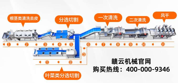 一條雙用凈菜加工流水線設備介紹,兩用凈菜流水線節省投入成本