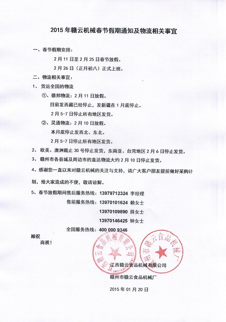 歡迎光臨江西贛云食品機械有限公司 食品機械購買熱線:400-000-9346 | 網站導航