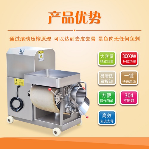 自動(dòng)魚(yú)肉采肉機(jī),別名又叫魚(yú)肉分離機(jī),適用于海魚(yú)、淡水魚(yú)各種魚(yú)類(lèi)。大魚(yú)分割成段,小魚(yú)直接采肉。魚(yú)肉采肉機(jī)是我廠技術(shù)人員根據(jù)國(guó)內(nèi)魚(yú)類(lèi)制品,生產(chǎn)工藝要求,結(jié)合我國(guó)實(shí)際需求,吸取臺(tái)灣、日本同類(lèi)機(jī)械精華,精心研制而成。該機(jī)專(zhuān)門(mén)用于各種淡水、咸水魚(yú)類(lèi)、蝦類(lèi)去皮骨,取凈肉的專(zhuān)用機(jī)械。該機(jī)結(jié)構(gòu)精密,高效實(shí)用,操作方便,經(jīng)久耐用。本機(jī)適用于廣大魚(yú)蝦類(lèi)制品專(zhuān)業(yè)廠、食品廠、漁船等單位。有效取代千百年來(lái)手工采取魚(yú)肉的艱苦勞動(dòng)過(guò)程一臺(tái)機(jī)器相當(dāng)于30個(gè)人的手工工作量,每小時(shí)凈肉400公斤。