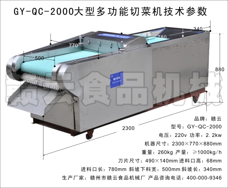 大型多功能果蔬切菜機放置平穩可靠,隨機提供詳細的操作說明,和使用方法,讓你用起來更加得心應手,價格合理,外形美觀,結構緊湊,操作簡便,工作可靠,餐廳多功能切菜機功能齊全,凡與食物接觸部分均采用不銹鋼制造,多功能切菜機符合衛生標準,同時設備采用優質不銹鋼刀片,永不生銹,安全衛生,保證菜味不變,價格低廉,非常具有性價比,多功能不銹鋼切菜機能快速的切出各種樣式,滿足不同客戶的多樣化需求,更多有關設備的操作問題歡迎來電咨詢贛云食品機械切菜機產家。