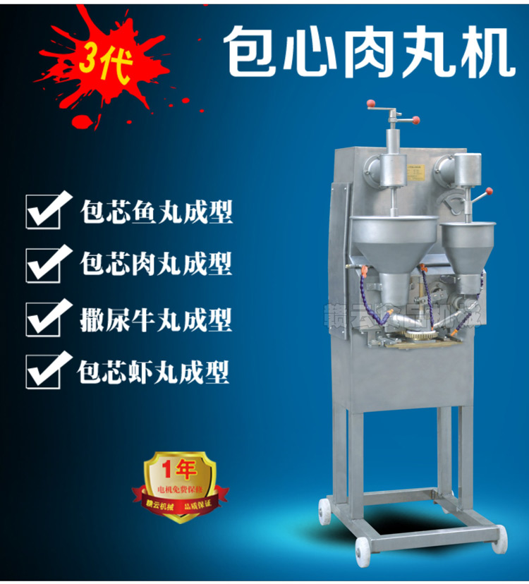 現在肉丸成型機在市場上的需求量也是快速增長的趨勢,而且生產肉丸不僅投資小還利潤高,在食品市場上見效也非常塊,肉丸成型機可以符號市場需求各種原材料都可以加工制作,無論是蔬菜餡、肉類餡的,可以制作各類爽脆,有韌性、有彈性的魚丸,豬肉丸,牛肉丸,雞肉丸等等,包心肉丸機所有這一切都能滿足您的加工使用。丸子機在運轉時,丸子直接落入接盤中,減少了人體對制品的接觸,更安全衛生。現已走向全國內地省市和海外飲食市場。