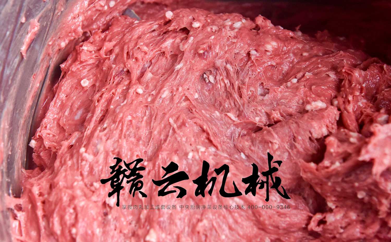 在把肉粒用打漿機(jī)制成牛肉將 過(guò)程中加入特制的調(diào)味料 打好的漿必須是拉絲狀