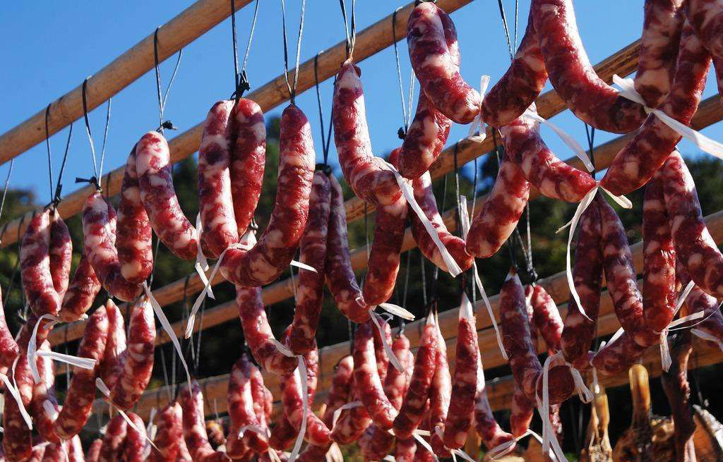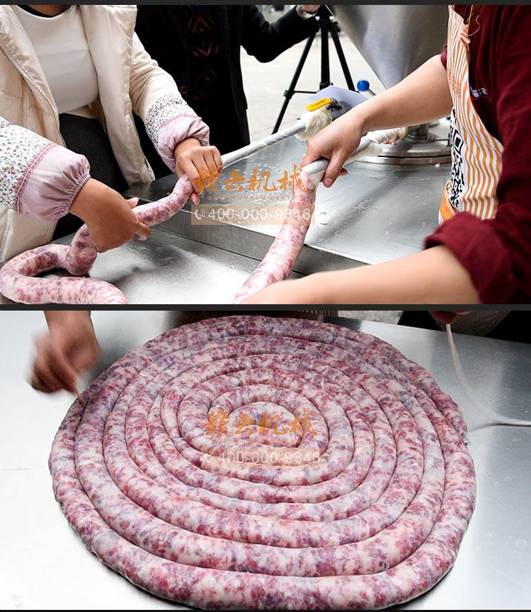 可是制作臘腸工序有點麻煩,還很耗時間。肉餡、灌腸、扎線....