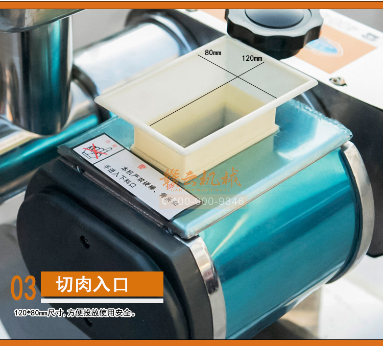(5)添加肉塊一定要均勻,不能過多,以免影響電機損壞,如發現機器運轉不正常,應立即切斷電源,停機后檢查原因。