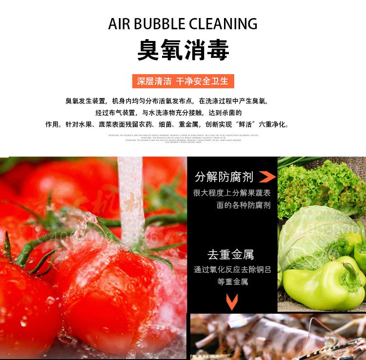 蔬菜清洗機有效的殺滅有害細菌,分解殘留農藥;通過清洗水循環利用,可節約80%的清洗用水用于清洗蘑菇、芹菜、菠菜、白菜等莖葉類蔬菜以及蘋果、西紅柿、辣椒、茄子、黃瓜、草莓等果蔬的主要設備,廣泛適用于蔬菜加工行業及廠礦、部隊、醫院、各大專院校等單位的食堂。