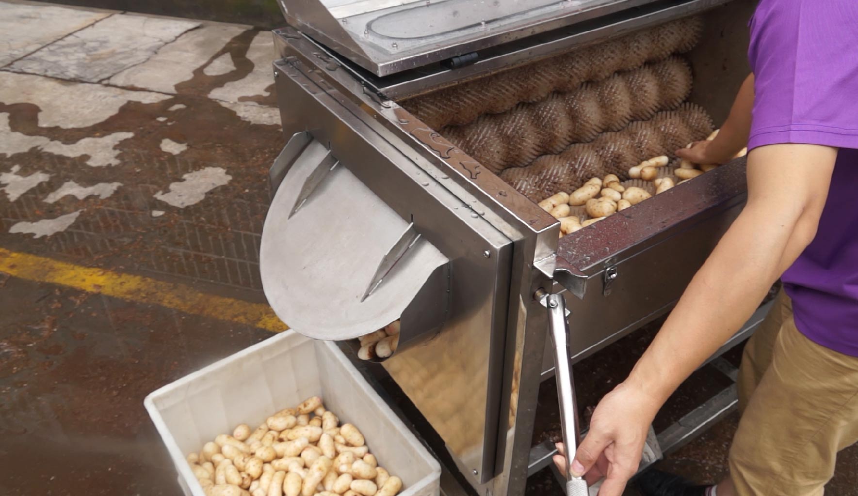 毛輥清洗機工作原理: 在電機的帶動下通過相對逆向滾動,與產品直接接觸產生磨擦達到去皮、清洗的效果;設計有自動高壓噴淋噴頭進行邊去皮邊沖洗,即可達到產品清洗并去皮的效果;并可根據產品品種更換毛刷棍毛的硬度,選用絲質較硬的毛刷輥,可以達到根莖類果蔬去皮效果,選用絲質較軟的毛刷輥,可達到給果蔬上臘拋光的作用。并要注意的是,工作時要先開機運行后再投料,可以延長電機壽命,減少電機損壞的機率。毛輥清洗機維護保養務必先將電源開關關掉,使設備處于停機狀態下進行。